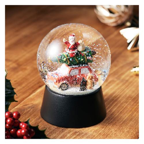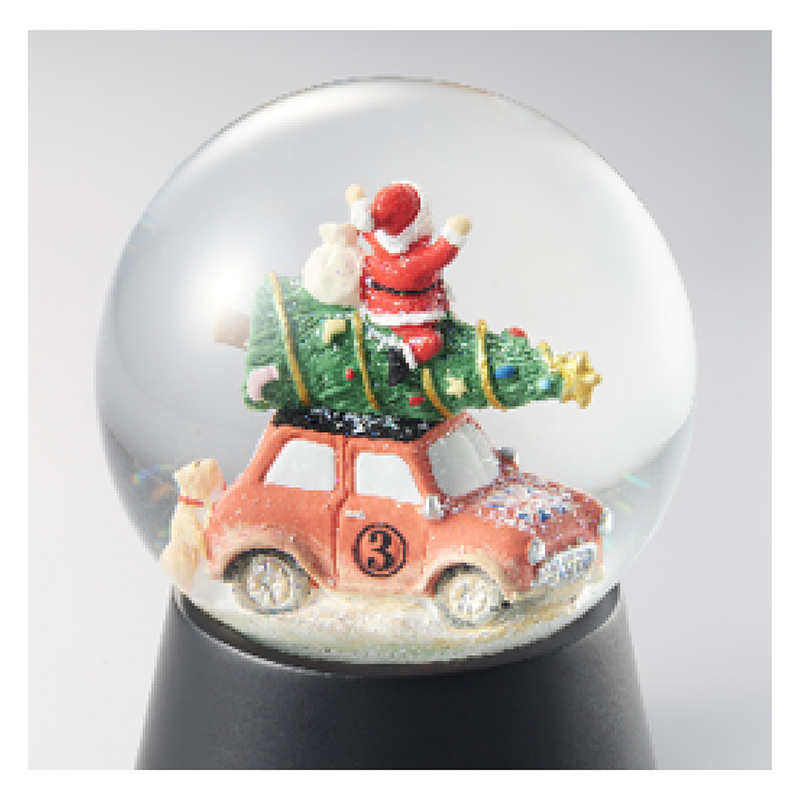 お部屋をクリスマスモードに。キラキラ輝く小さな雪景色。 大きなツリーをトナカイではなく車で運ぶ、お茶目なサンタクロース。近くにはご褒美を待つ猫や犬の姿も。贈り物にもぴったりな手のひらサイズの可愛いスノードームです。 ●サイズ(約):ドーム部分直径=8cm/台座部分=幅7.5×高さ10.5cm ●重量(約):415g ●材質:ガラス、水、ポリレジン、PET樹脂、他 ●中国製 ※商品の性格上、一点一点風合い等が異なります。
