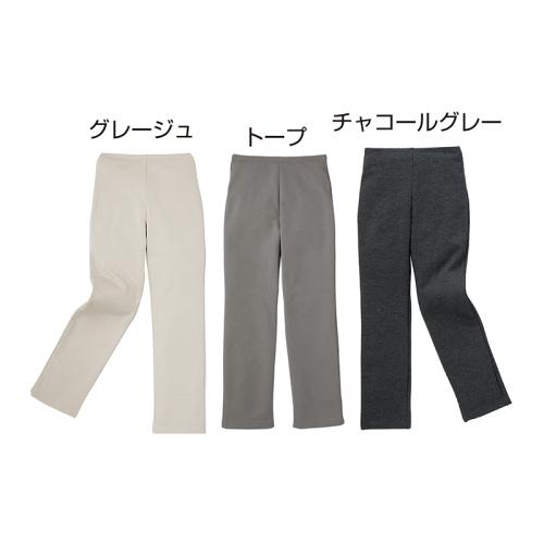 肉厚の吸湿発熱素材を使用。柔らかでストレッチ性にも優れ、心地よくフィットします。トップスを選ばないストレートシルエットです。