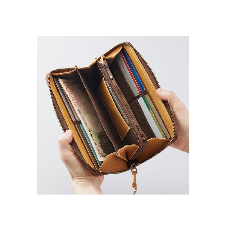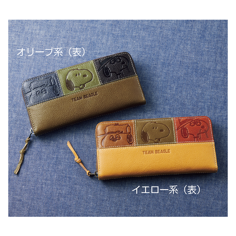 スヌーピーがいっぱい! 大人に似合う長財布です。 スヌーピーと兄弟のいろいろな表情をあしらった長財布。大人に似合う色使いとデザインが魅力です。表裏で異なる色とデザインも特徴。 ●サイズ(外寸・約):幅20×高さ10×厚さ3cm ●重量(約):205g ●材質:表地=牛革/裏地=牛革、綿 ●仕様:札入れ×2、L字ファスナー式小銭入れ×1、カード入れ×13、オープンポケット×3 ●バングラデシュ製 ※商品の性格上、一点一点柄の出方が異なる場合があります。