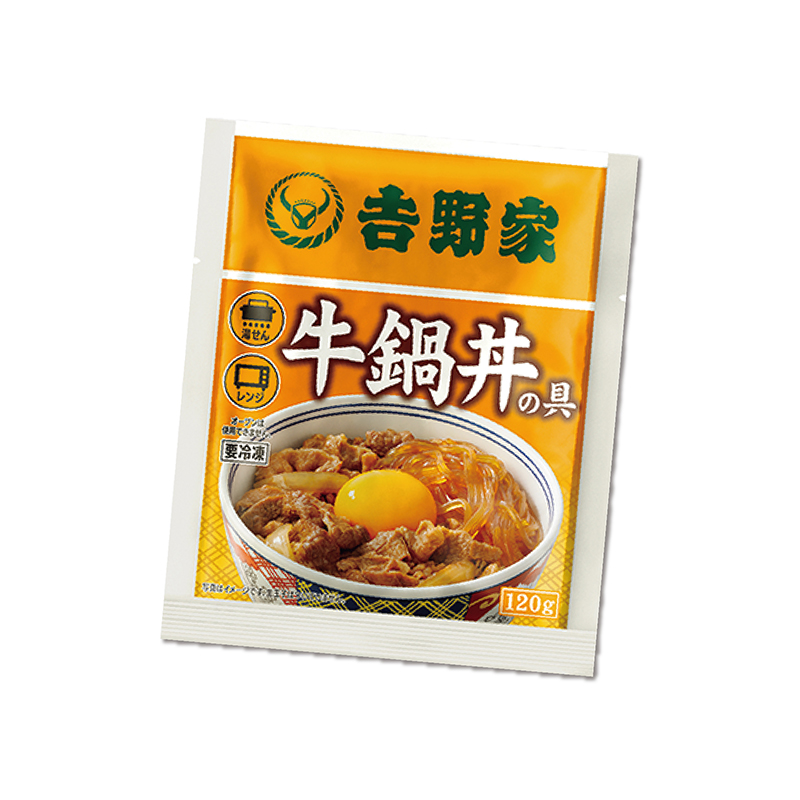 吉野家の人気商品「牛鍋丼」の具を復刻。レンジまたは湯煎で温めてご飯の上へ! 具材は牛肉、玉ねぎ、春雨。タレはすき焼き風で、飽きないすっきりした甘さに仕上げました。ご飯にかけて牛鍋丼、お皿に盛って牛鍋皿としておかずの一品に。 ●セット内容:120g×14袋 ●賞味期限:-18度以下の冷凍保存で180日 ●国内製造 ●特定原材料等:小麦、牛肉、大豆、鶏肉、豚肉 ※ご飯・卵はついていません。 ※商品の性格上、出荷後のキャンセル及び返品・交換はお受けできません。 ※お届けまで約2週間かかる場合があります。 ※クール冷凍便でお届けしますので、一部離島にはお届けできません。
