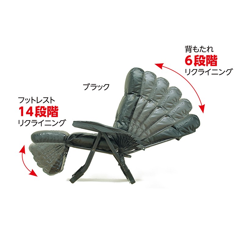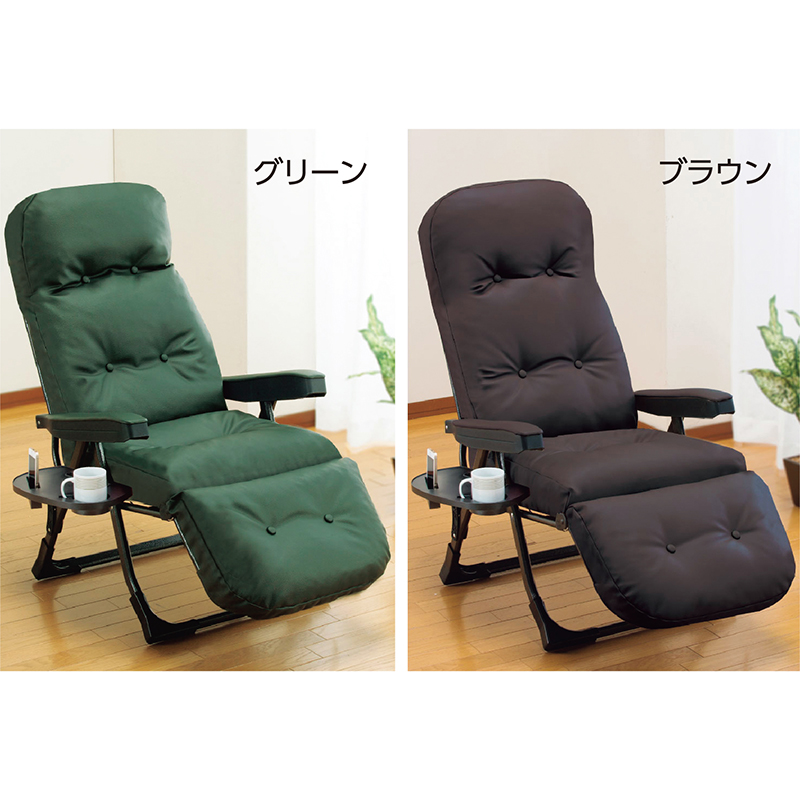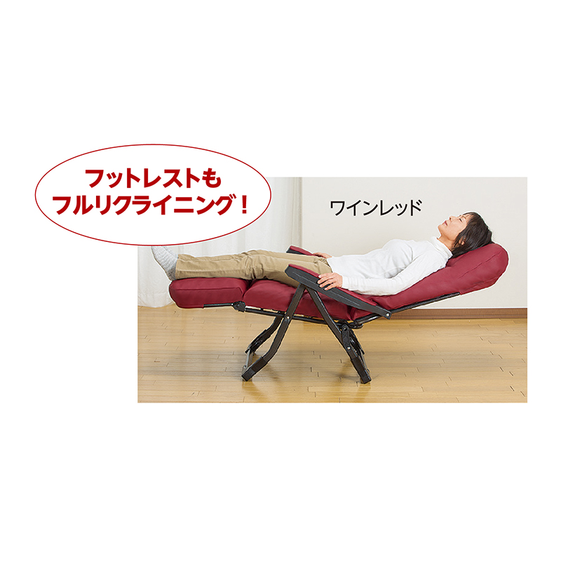 リクライニングで全身リラックス。厚手クッションに包み込まれる快感! 背もたれ・座面のSバネ構造に、クッション材は国内メーカーのウレタンを採用。高いクッション性で、リラックスできます。フットレストを上げれば、全身ノビノビ! ●サイズ(約):幅60×奥行86~154×高さ62~106cm/座面までの高さ=41cm ●重量(約):10.5kg ●耐荷重(約):80kg ●材質:構造部=鋼(エポキシ樹脂粉体塗装)/表面張地=合成皮革/裏面張地=ポリエステル/中材=ウレタンチップ、鋼製バネ(S字型単バネ) ●仕様:背もたれ6段階リクライニング、フットレスト14段階リクライニング ●日本製 ※スマートフォン、マグカップは付属しません。 ※お届けまで約3週間かかる場合があります。