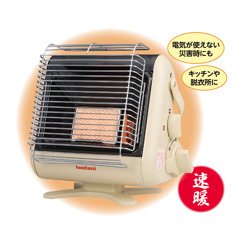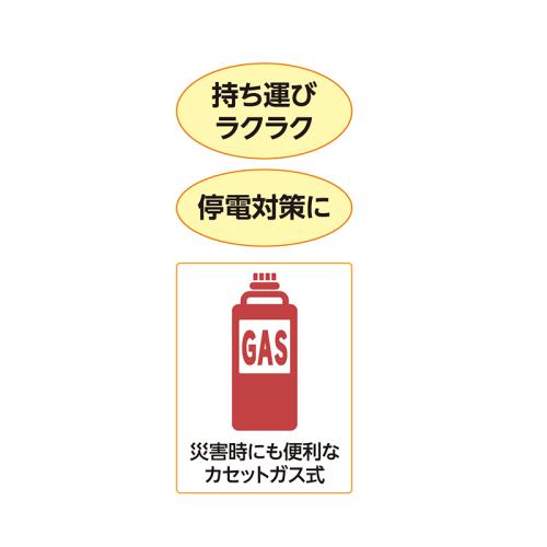 電源不要だから、家中どこでも暖かさを持ち運び。 スイッチひとつの簡単操作。すぐに暖まるのも特長です。カセットガスと一緒に、もしもの時の備えにも。 ●カラー:アイボリー ●サイズ(約):幅31.2×奥行22.2×高さ29cm ●重量(約):2.6kg(カセットガス含まず) ●材質:本体=鋼板(粉体塗装)/持ち手・器具栓つまみ=ABS樹脂/バーナー=セラミック ●機能:標準モード(連続燃焼時間目安・約3時間20分)、弱運転モード(連続燃焼時間目安・約3時間55分)、不完全燃焼防止装置、立ち消え安全装置、転倒時消火装置、圧力感知安全装置 ●屋内専用 ●ベトナム製 ※イワタニカセットガス(別売)をご使用ください。 ※ご使用後の返品・交換はお受けできません。