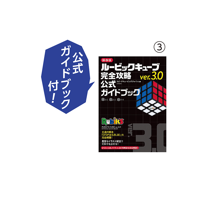 「パズルの王様」といわれるルービックキューブに挑戦! 今も変わらぬ人気で「パズルの王様」と言われるルービックキューブ。不滅の立体パズルを簡単な2×2タイプと本格的な3×3タイプで楽しみませんか。手をひねり、頭をひねることで脳トレにも! ●セット内容:①3×3、②2×2、③公式ガイドブック(全79ページ) ●サイズ(約):①=幅5.5×奥行5.5×高さ5.5cm/②=幅4.5×奥行4.5×高さ4.5cm ●重量(約):①=87g/②=52g ●材質:①②=ABS樹脂/③=紙 ●対象年齢:①=8歳以上/②=6歳以上 ●①②=中国製/③=日本製