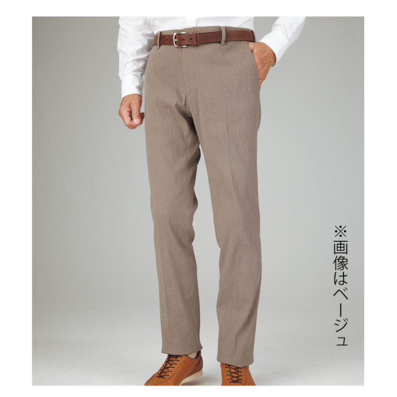 快適なはき心地、美しいシルエット。 ハイパーストレッチ生地の高い伸縮性で、快適なはき心地。裏起毛素材を採用した暖かく、やわらかな感触が、寒い冬にぴったりです。 ●素材:ポリエステル49%、レーヨン27%、ナイロン20%、ポリウレタン4% ●仕様:ノータック、脇ポケット×3(右コインポケット含む)、後ろポケット×2、ウエストホック留め前ファスナー ●手洗い可 ●日本製 ※ベルトは付属しません。 ※お届けまで約3週間かかります。 ※オーダー生産のため、ご注文後のキャンセル・返品・サイズ交換等は不良品以外お受けできません。