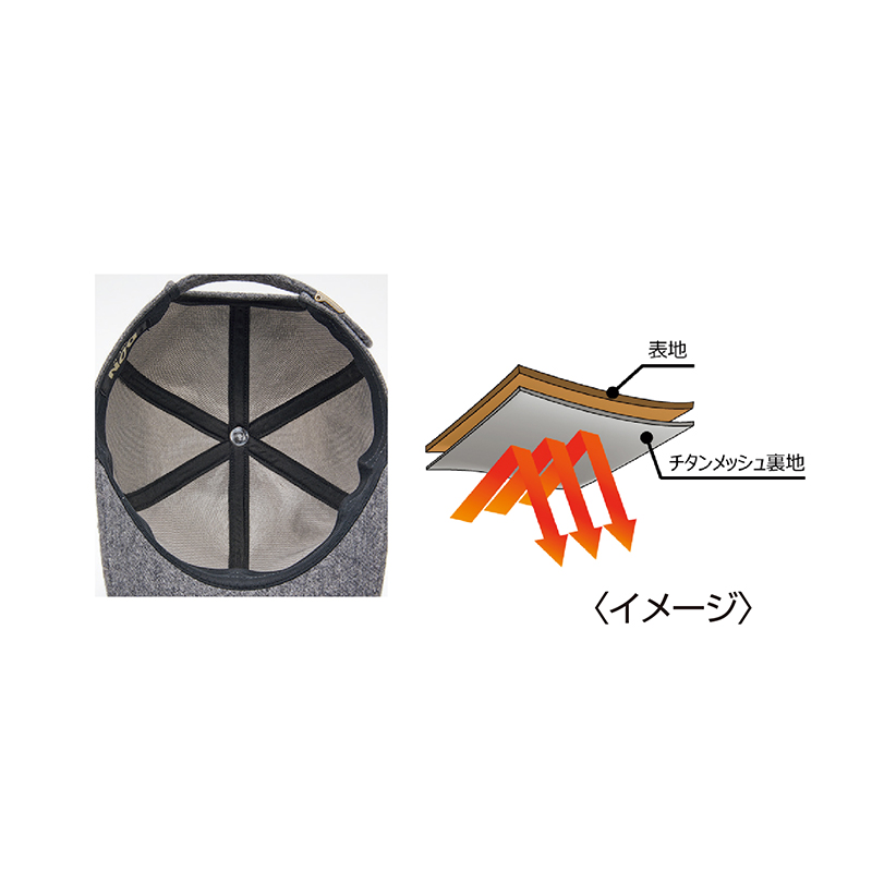 頭部裏側にチタン素材をボンディング。体温を反射しキャップ内を暖かく保ちます。