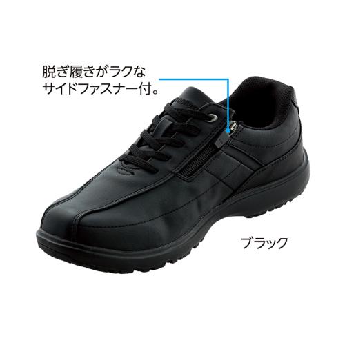 やわらかく、軽く、濡れた路面に強い。エアロクッションが足裏を包み込む。 エアロクッションが足裏をやさしく受け止めてフィット。高反発弾性ソールで歩きやすさをサポート。Ag+抗菌防臭機能、メッシュのサラリーナ素材で、靴内はさらさら快適です。 ●ワイズ:4E ●重量(約):310g(25.5cm・片足) ●材質:アッパー=合成皮革/ソール=合成底 ●ベトナム製