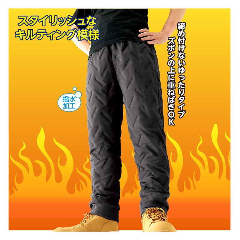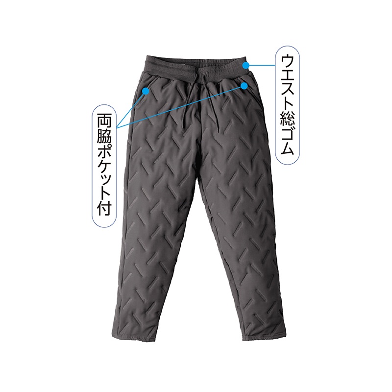 防寒着ならコレ! 軽いはき心地が快適! 防風・防寒 寝袋のようなホットパンツ。 ●カラー:グレー ●材質:表側=ポリエステル95%、ポリウレタン5%/中わた・裏側=ポリエステル100%/リブ部=ポリエステル71%、綿22%、レーヨン5%、ポリウレタン2% ●仕様:両脇ポケット、ウエスト総ゴム(調整ひも付)、前とじ ●洗濯機可 ●中国製 ※裾直し後の返品・交換はお受けできません。