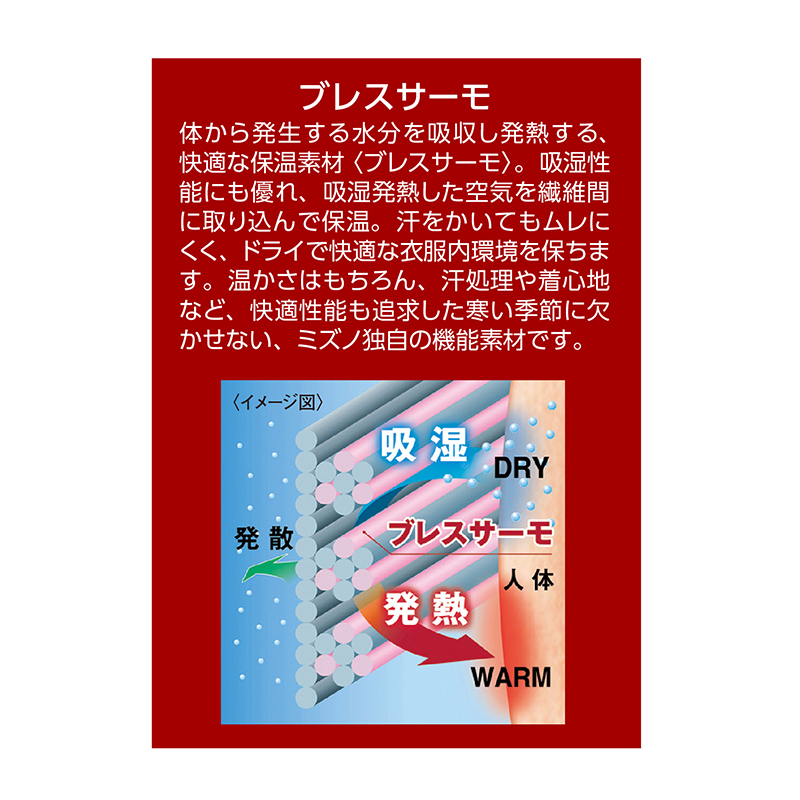 薄手なのに、発熱して暖か。ブレスサーモ裏地使用ウォーマージャケット。 汗を吸収し、発熱。さらにムレにくく、快適に。ブレスサーモを裏地に採用し、撥水と防風性能を備えたウォーマージャケット。両肩から袖のMCラインが精悍です。 ●素材:表地・裏地本体=ポリエステル100%/身頃上部=ポリエステル94%、アクリレート(ブレスサーモ)6% ●仕様:両脇ポケット、裏起毛トリコット ●洗濯機可 ●中国製