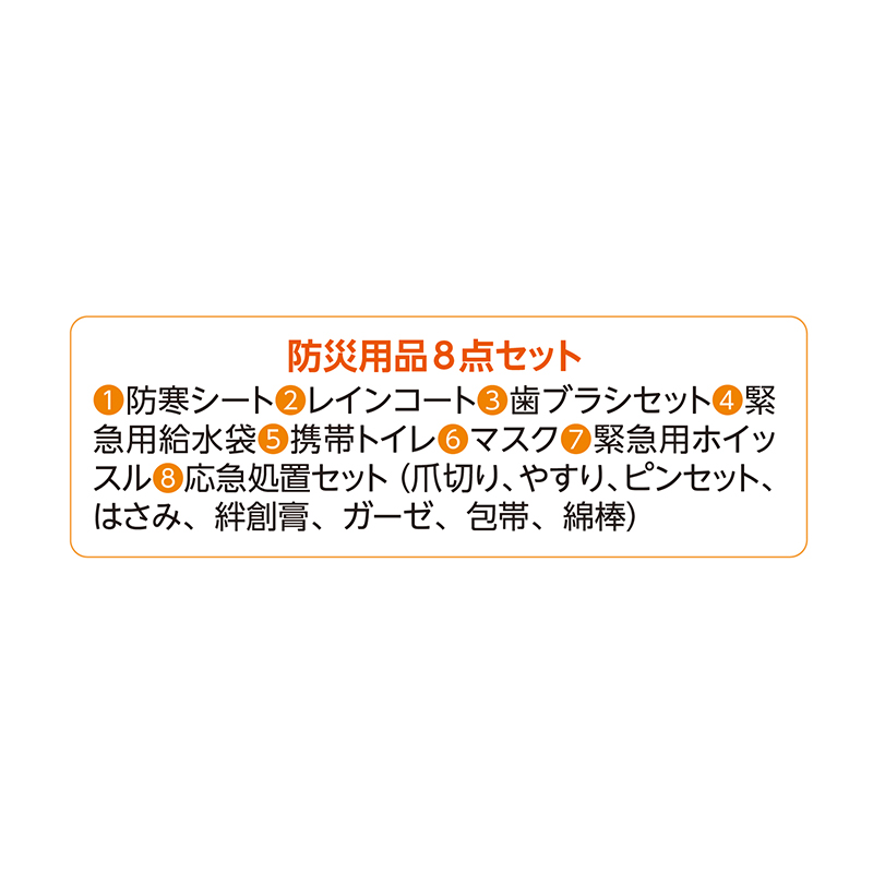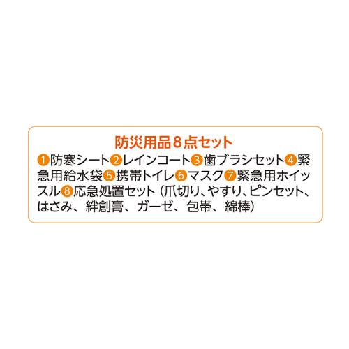 雨にも強い防水仕様。あなたとご家族を守る備え。 老舗かばんメーカーが作った防災リュックセット。防水性能を備え、リュックベルト分の反射テープにより夜間や暗闇でも見つけやすい仕様。内容物は必要最低限の防災用品8点。買い足して、あなたの防災リュックを完成させてください。●サイズ(外寸・約):リュック=幅31×高さ46×厚さ17cm ●重量(約):リュック=ポリエステル870g ●材質:リュック=ポリエステル(PVCコーティング) ●仕様:ダブルファスナーメインコンパートメント(内部にPC用オープンポケット×1)/前面=ダブルファスナーポケット×1(内部にオープンポケット×1、ペン差し×2)、ファスナーポケット×1/側面=オープンポケット×2/背面=オープンポケット×1、キャリーオン機能 ●中国製 ※完全防水ではありません。 ※防災用品をご使用後の返品・交換はお受けできません。