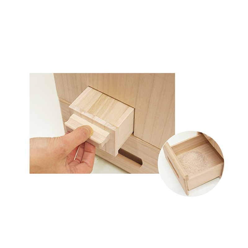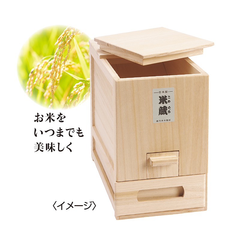 米どころ・富山の職人が作り上げた、総桐製米びつ。 桐材のもつ天然の防虫、調湿・調温効果で、お米を虫害や高温多湿から守ります。プラスチックや金具は一切使わないこだわり。つまみを引くたび、一合ずつ容器に落ちる計量機能付。お米を残らず取り出せる構造です。 ●サイズ(約):幅23×奥行43×高さ34cm ●重量(約):2kg ●材質: 天然木(桐) ●日本製 ※商品の性格上、一点一点風合い等が異なります。 ※お届けまで約3週間かかる場合があります。 ※ご使用後の返品・交換はお受けできません。
