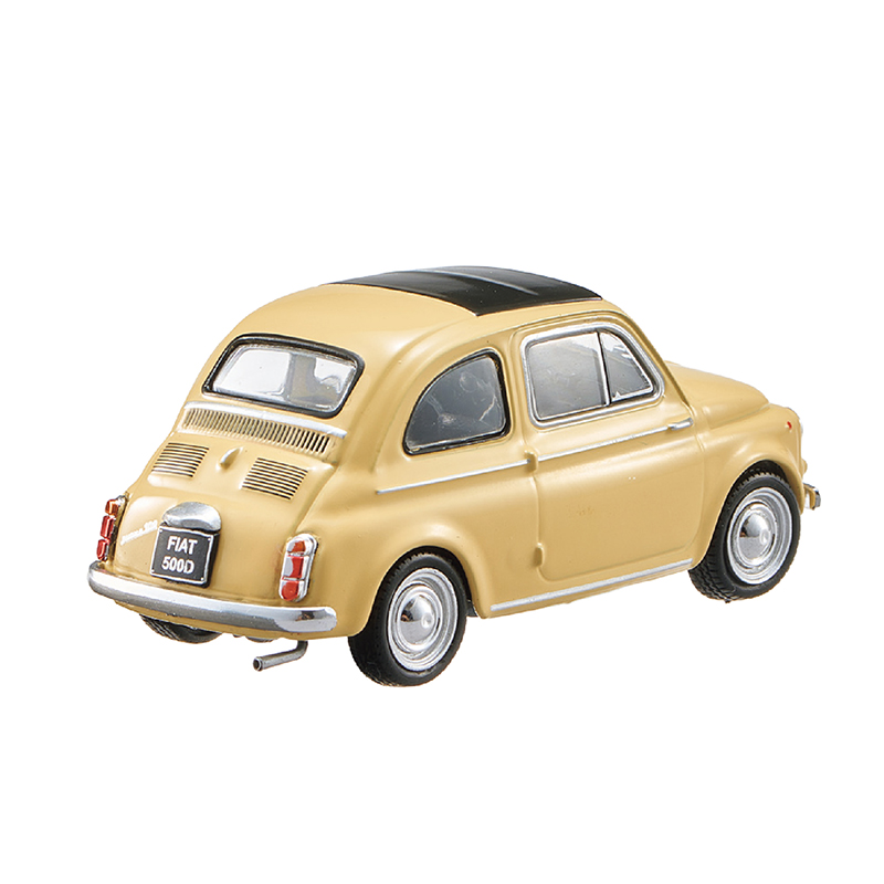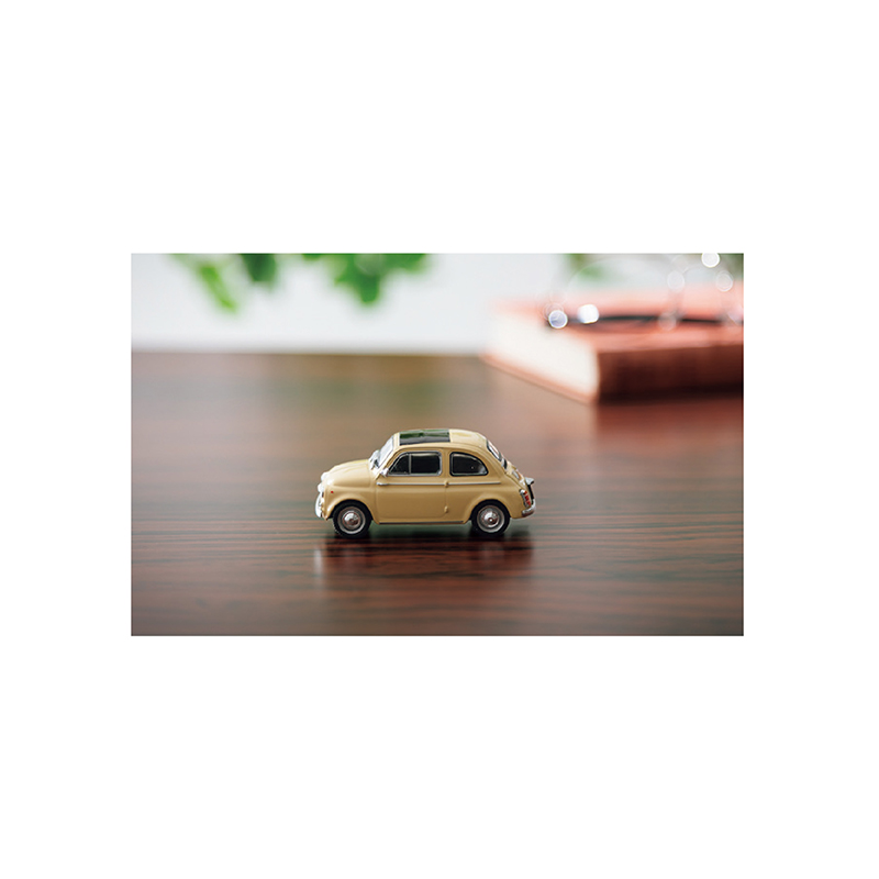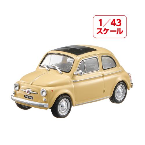 フィアット500Dのかわいらしさを1/43スケールで再現しました。 コロンとした独特のフォルム、愛らしいフロントフェイス、丸くチャーミングなヘッドライトなど、実車の魅力をあますところなく再現した、小さな、小さな、フィアット500Dです。 ●カラー:ライトイエロー ●サイズ(外寸・約):本体=全長7×全幅3×全高3cm/台座=幅15.2×奥行7.7×厚さ1.5cm ●重量(約):本体=50g/台座・クリアケース=100g ●材質:本体=ダイキャスト、ABS樹脂/台座=ABS樹脂 ●仕様:タイヤ可動 ●バングラデシュ製