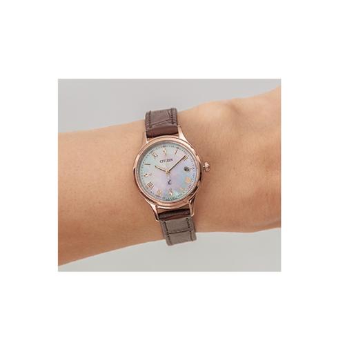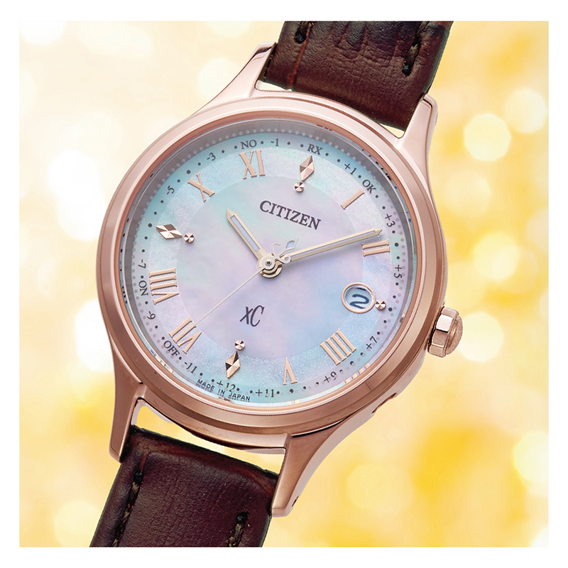 サクラピンクのケースに白蝶貝のフェイスで上品さ薫る。 シンプルですっきりとしたデザインに、サクラピンクのケースと白蝶貝のフェイスが美しい新春らしい一本です。ブラウンの革ベルトで手もとを大人っぽく引き締めます。 ●カラー:ケース=サクラピンク/ベルト=ブラウン ●サイズ(約):直径27×厚さ8.2mm/適応手首周り=最大17.8cm ●重量(約):20g ●材質:ケース=スーパーチタニウム(デュラテクトサクラピンク・サクラ色)/ベルト=牛革/風防=球面サファイアガラス(無反射コーティング)/文字板=白蝶貝 ●仕様:日本製クォーツムーブメント、平均月差±15秒(電波非受信時)、光発電方式(フル充電時約3年可動、パワーセーブ作動時)、日中米欧電波受信、5気圧防水、パーペチュアルカレンダー、日付表示、ダイレクトフライト、ワールドタイム機能(24時差)、サマータイム機能、パーフェックス(JIS1種対磁、衝撃検知機能、針自動補正機能)、充電残量表示機能、充電警告機能、過充電防止機能、パワーセーブ機能、受信局自動選択機能、定時受信機能、強制受信機能、夜光(針) ●留め具:三つ折れプッシュ式 ●キャリバーナンバー:H060 ●日本製 ※一部電波の入りにくい場所(室内、ビル内など)や環境(曇天、雨天など)があります。