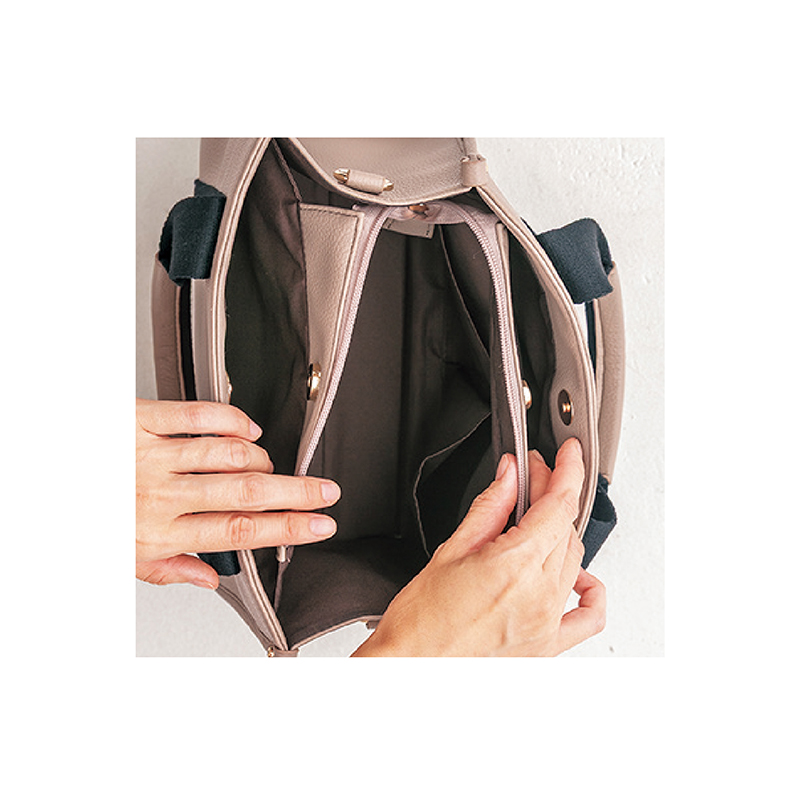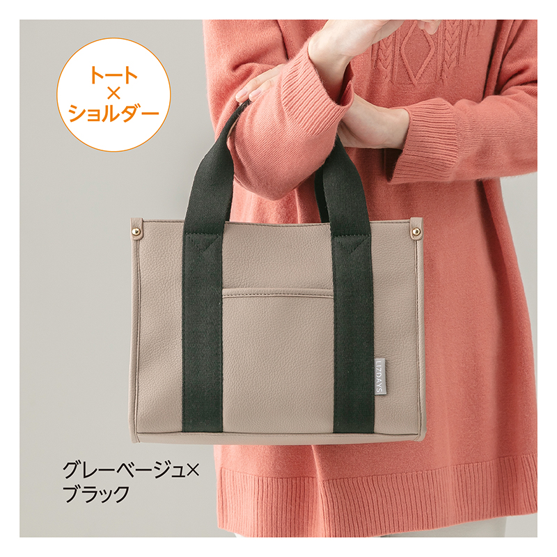 3層構造でバッグ内はいつもきれい。シーンに合わせ、スタイルを変える2WAY。 メインコンパートメントと前後のあおりポケットに、荷物を便利に分けて収納。手持ちで、肩掛けバッグで、気分に合わせて2WAYに楽しめます。 ●サイズ(外寸・約):幅28.5×高さ21×厚さ13.5cm/ショルダーベルト長さ=75~135cm(着脱可)/持ち手高さ=12cm ●重量(本体・約):670g ●材質:ポリウレタン、他 ●仕様:ファスナーメインコンパートメント(内部にファスナーポケット×1、オープンポケット×2)/前側・後側=マグホックあおりポケット×各1/前面=オープンポケット×1 ●中国製