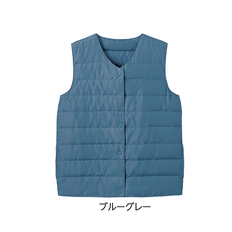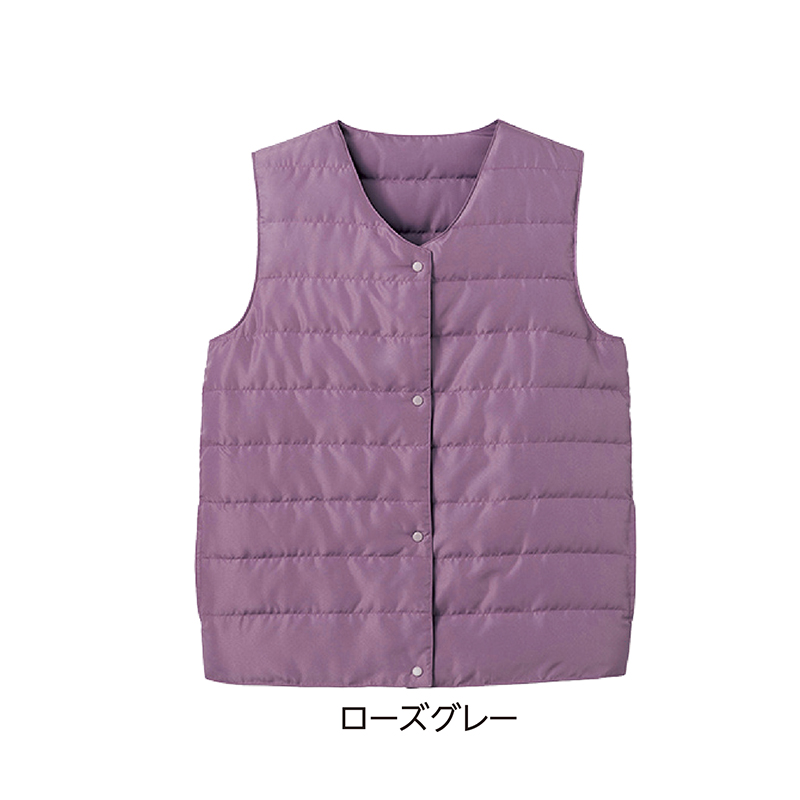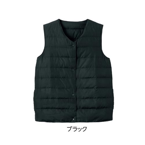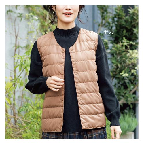 ほどよいダウン量と細かいキルトパターン。すっきり着られます。 暖かな日も、寒い日も、調節しやすいダウンベスト。シャツやパーカーなどに合わせやすいVネックを採用し、シンプルなので重ね着もすっきり見えます。 ●重量(約):175g ●素材:表地・裏地=ポリエステル100%/中わた=ダウン80%、フェザー20% ●仕様:両脇ポケット ●手洗い可 ●中国製 ※インナー、アクセサリーは付属しません。