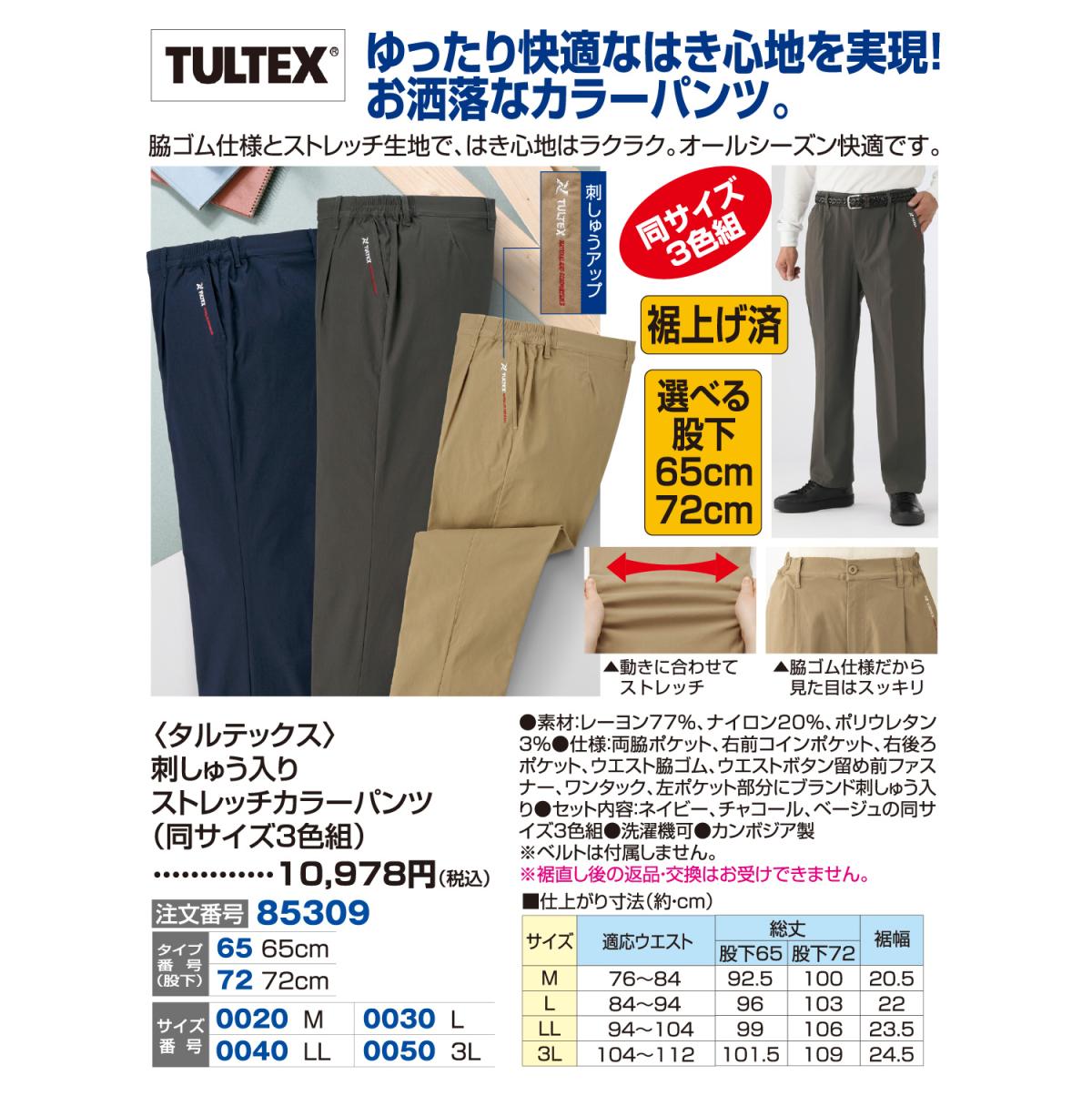 〈タルテックス〉刺しゅう入りストレッチカラーパンツ(同サイズ3色組)