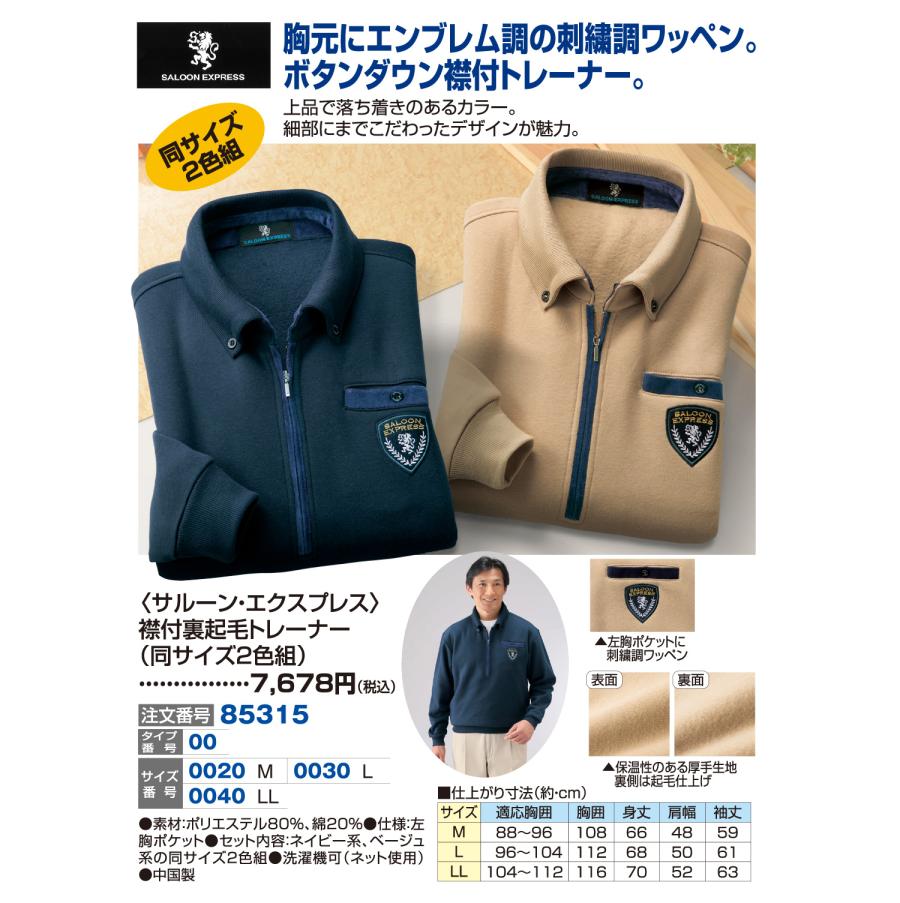 3. 〈サルーン・エクスプレス〉襟付裏起毛トレーナー(同サイズ2色組)