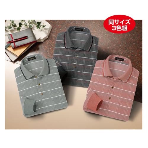 〈ポール・ミラー〉格子柄長袖ポロシャツ(同サイズ3色組)