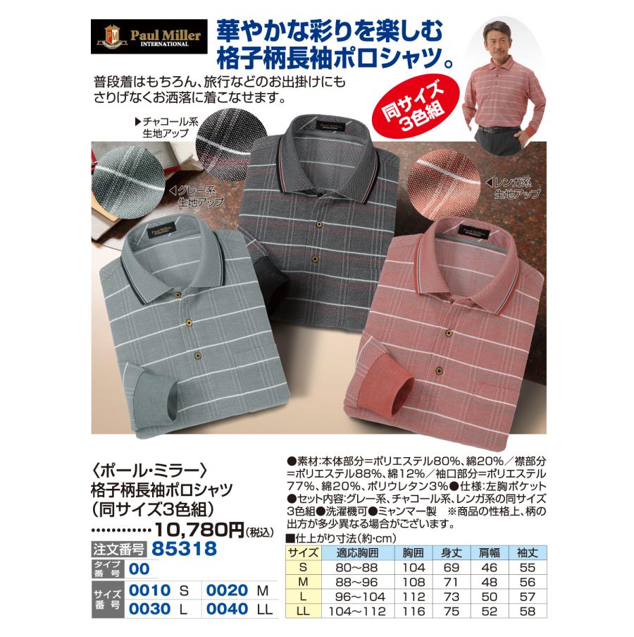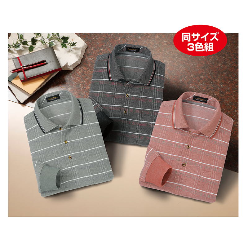 3. 〈ポール・ミラー〉格子柄長袖ポロシャツ(同サイズ3色組)