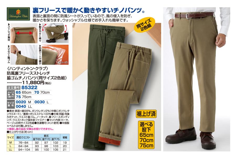 〈ハンティントン・クラブ〉防風裏フリースストレッチ脇ゴムチノパンツ(同サイズ2色組)