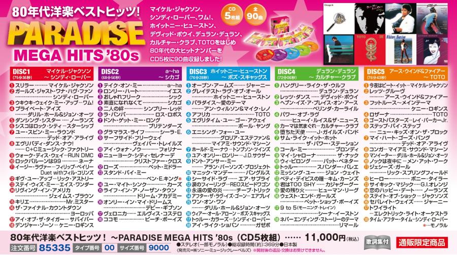 80年代洋楽ベストヒッツ! ~PARADISE MEGA HITS ’80s(CD5枚組)