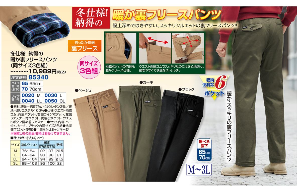 3. 冬仕様!納得の暖か裏フリースパンツ(同サイズ3色組)