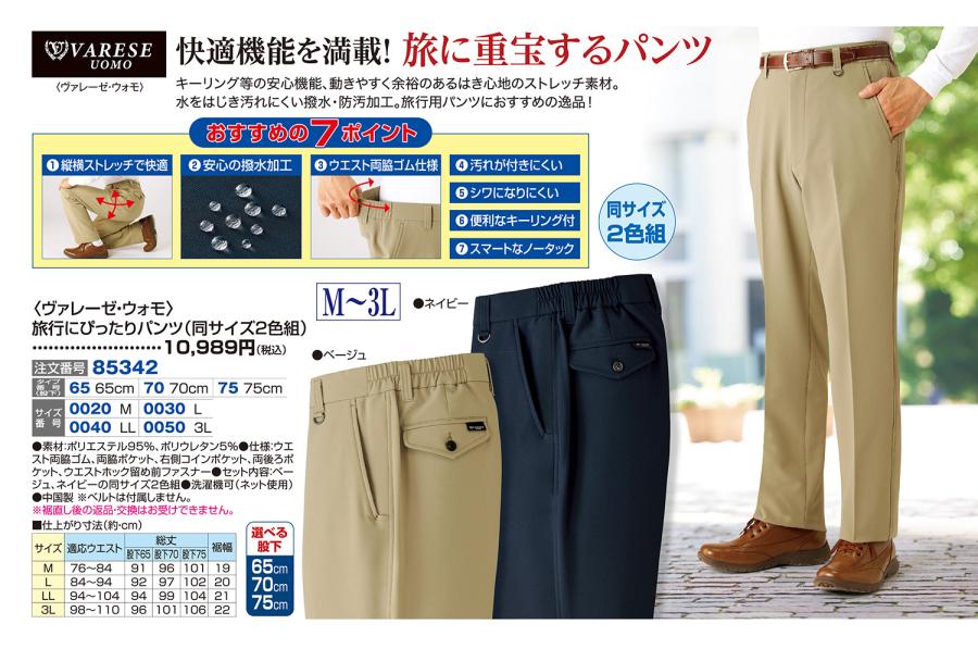 〈ヴァレーゼ・ウォモ〉旅行にぴったりパンツ(同サイズ2色組)