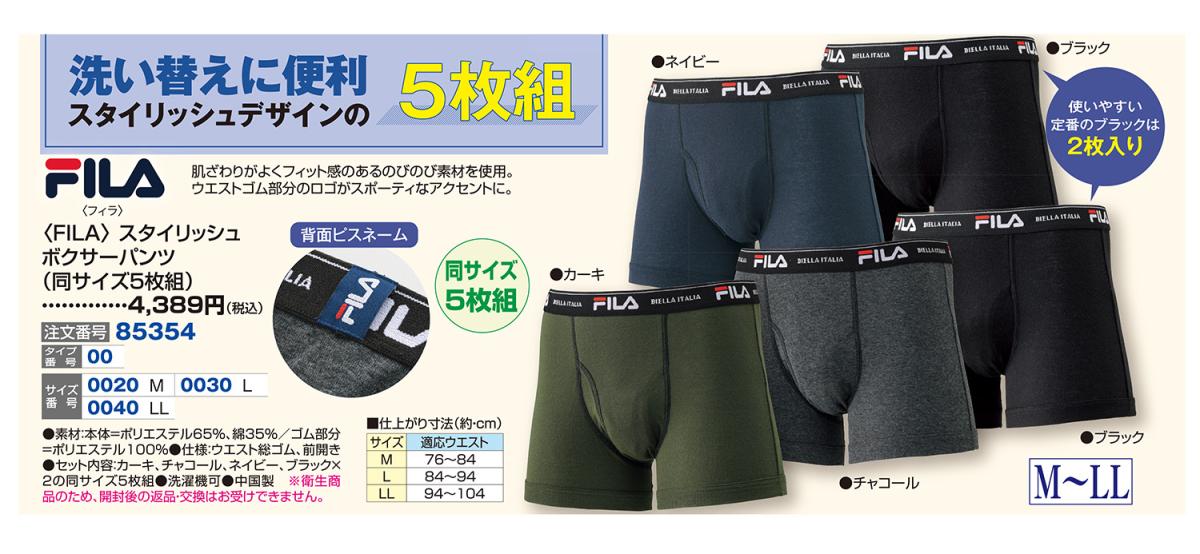 〈FILA〉スタイリッシュボクサーパンツ(同サイズ5枚組)