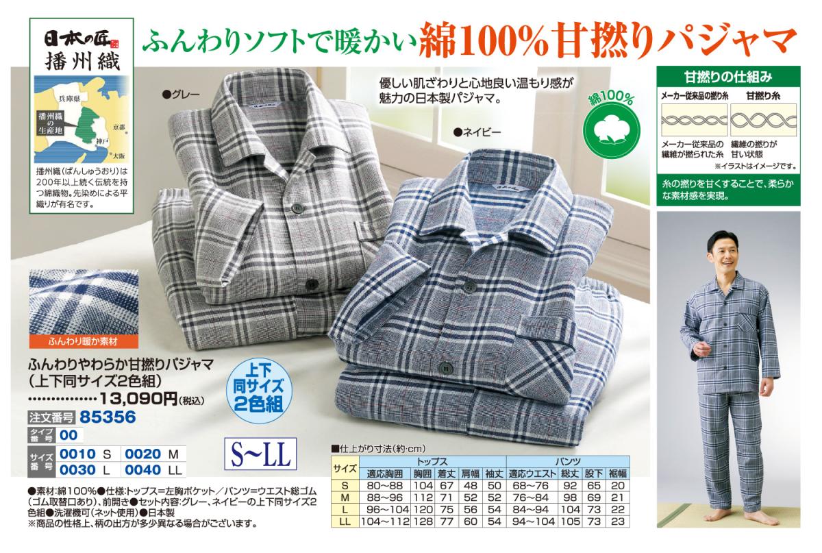 3. ふんわりやわらか甘撚りパジャマ(上下同サイズ2色組)