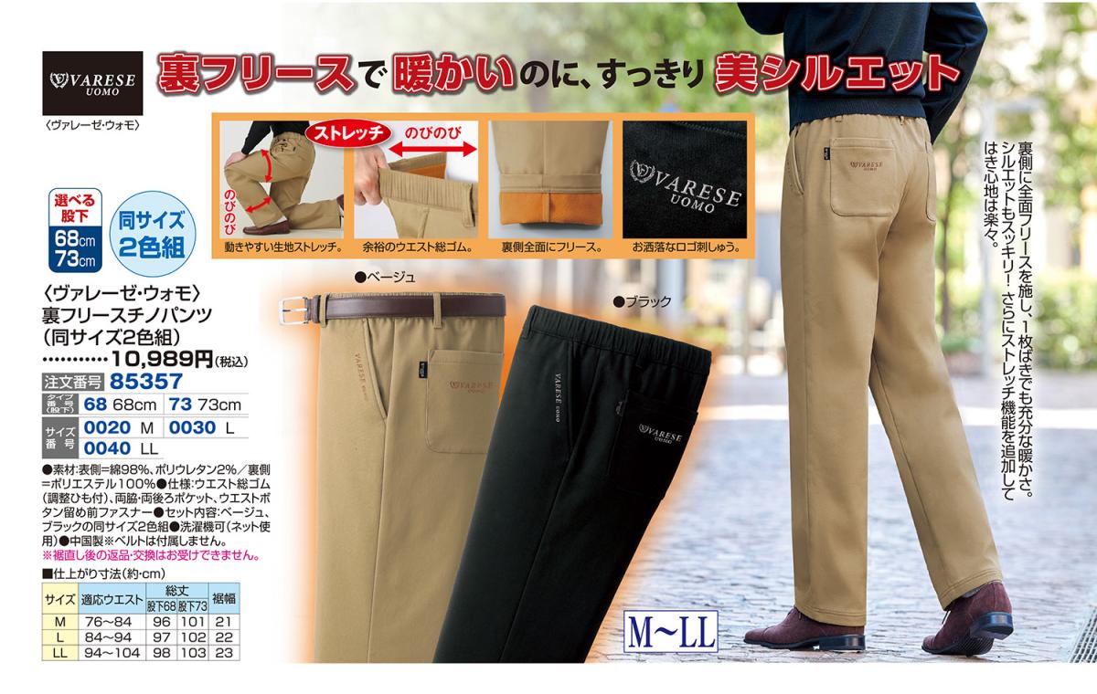 3. 〈ヴァレーゼ・ウォモ〉裏フリースチノパンツ(同サイズ2色組)