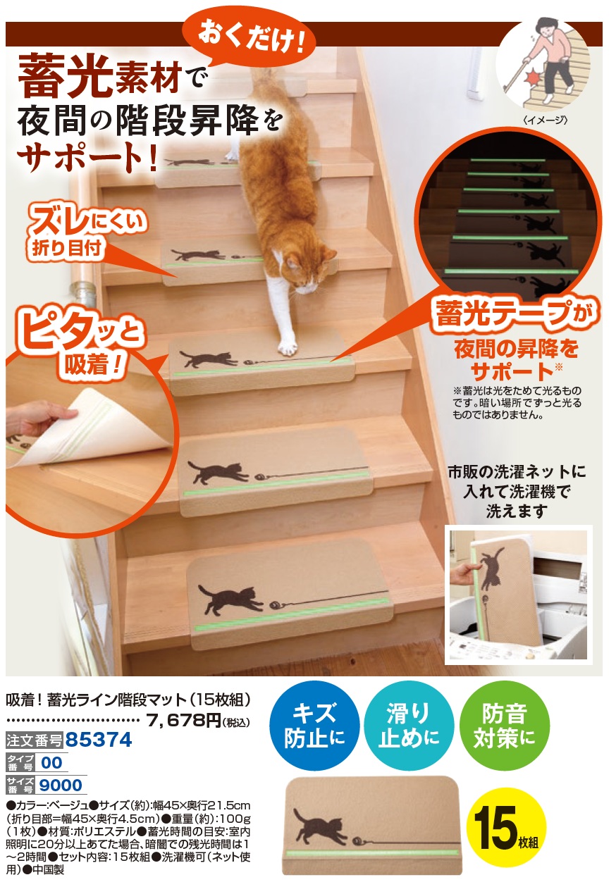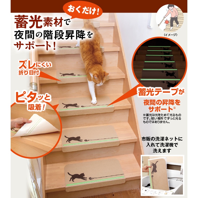 3. 吸着!蓄光ライン階段マット(15枚組)