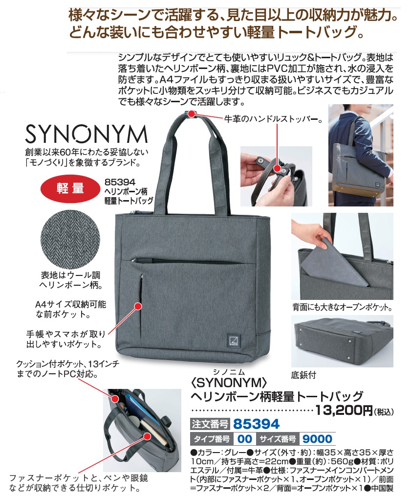 3. 〈SYNONYM〉ヘリンボーン柄軽量トートバッグ