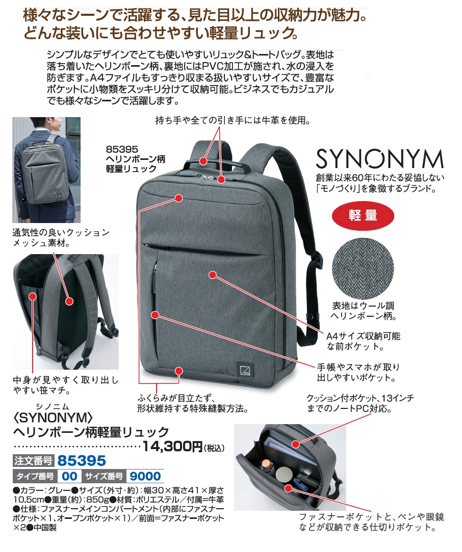 3. 〈SYNONYM〉ヘリンボーン柄軽量リュック