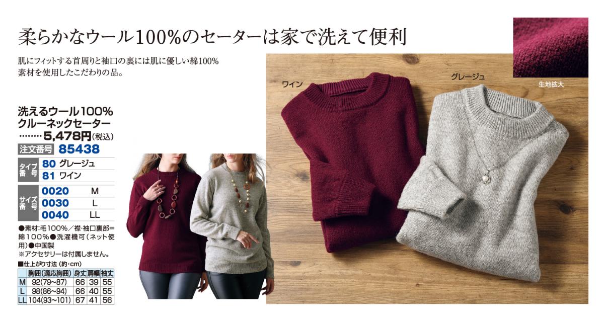 洗えるウール100%クルーネックセーター
