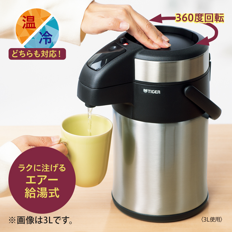朝入れたお湯が夕方まで温かい! 電気を使わずにしっかり保温・保冷できる真空断熱のまほうびん。汚れやニオイがつきにくく、コードがないので持ち運びも簡単です。 ●サイズ(約):幅17.8×奥行24.5×高さ27.2cm/持ち手高さ=4cm ●重量(約):1.4kg ●材質:ステンレス鋼、ポリプロピレン ●効力(10時間・約):保温=69度以上/保冷=9度以下 ●中国製 ※ご使用後の返品・交換はお受けできません。