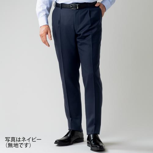 程よいゆとりがあり、動きやすさとスタイリッシュなシルエットを両立したワンタックスラックス。ウール混素材ながらご家庭で洗えます。