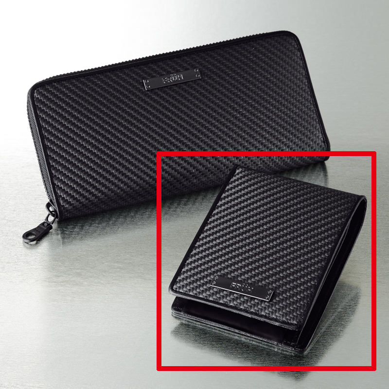軽さと強さ、精悍な印象羨望のカーボン仕立て。 驚きの軽さと、鉄の約10倍の引っ張り強度を持つといわれているカーボン(炭素繊維)を身にまとった、精悍な漆黒のウォレットです。内部の牛革にもこだわり、丁寧に仕上げました。 ●サイズ(外寸・約):幅9.3×高さ12×厚さ2cm ●重量(約):88g ●材質:表地=カーボンシート(炭素繊維・綾織り)、他/裏地=牛革、レーヨン、他 ●仕様:札入れ×2、カード入れ×10、オープンポケット×1、ボックス型小銭入れ×1 ●ベトナム製 ※商品の性格上、一点一点風合い等が異なります。
