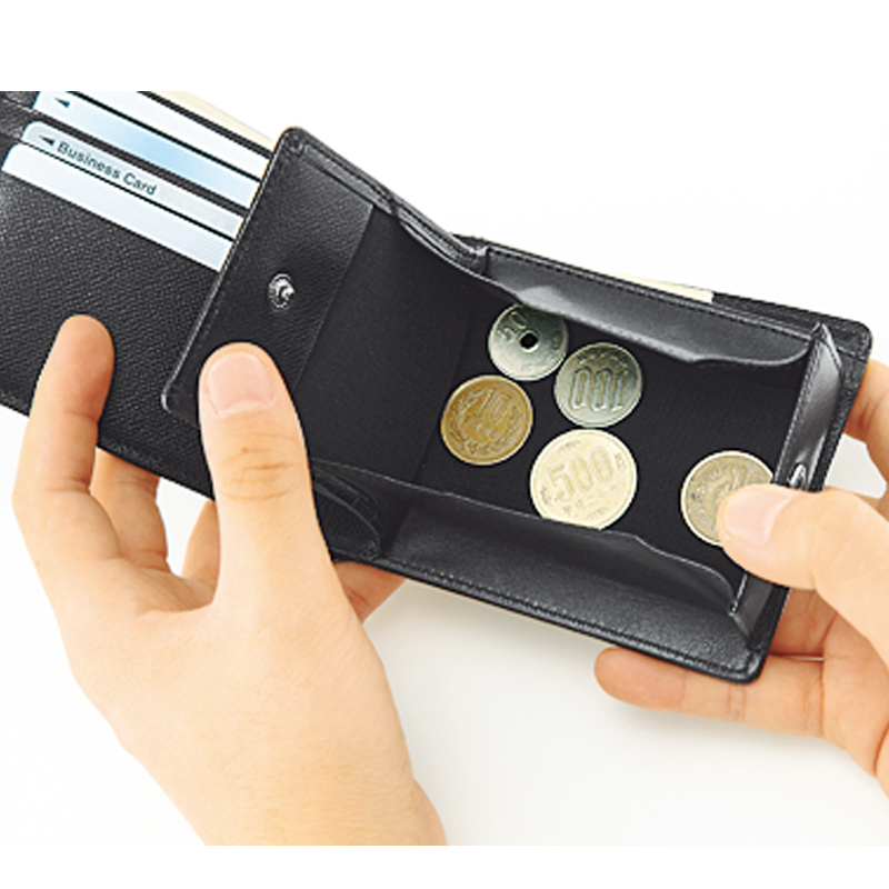 中が見やすく取り出しやすいボックス型小銭入れ。