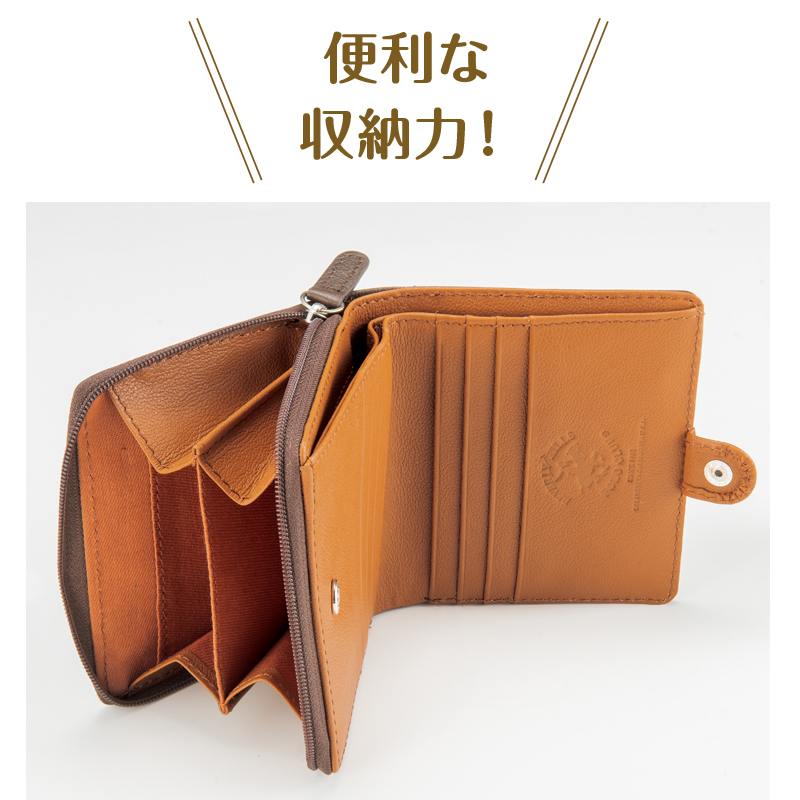 コンパクトなのに容量のある二つ折り財布。 コンパクトでも中身が入らない財布は困る、という方に。トラディショナルな雰囲気が魅力の本品は、お札、カード、小銭からレシートまでしっかり入り、日常使いに重宝します。 ●サイズ(外寸・約):幅11×高さ9.5×厚さ3cm ●重量(約):109g ●材質:表地=牛革/裏地=綿 ●仕様:札入れ×2、カード入れ×6、オープンポケット×2、仕切り付小銭入れ×1 ●バングラデシュ製