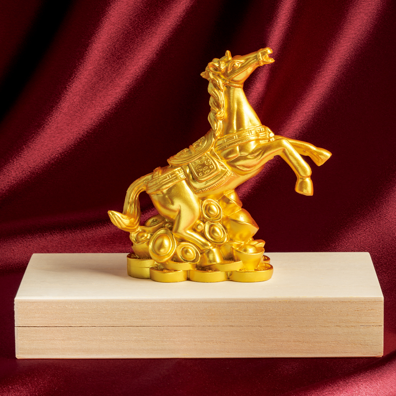 幸運の「跳ね馬」を「左馬」で。「金持神社」でご祈願しました。 古来より開運出世や家運隆盛の「福馬」として珍重された「跳ね馬」と「左馬」をかたどり、さらに鳥取県・金持神社で「一粒万倍日」にご祈願した縁起物です。宝くじ入れにもなる桐箱の台座を添えてお届けします。 ●サイズ(約):本体=幅11.5×奥行4×高さ11cm/桐箱=幅17×奥行9×高さ3cm/桐箱内寸=幅16×奥行8×高さ2cm ●重量(本体・約):180g ●材質:本体=ポリレジン樹脂/箱=天然木(桐) ●中国製