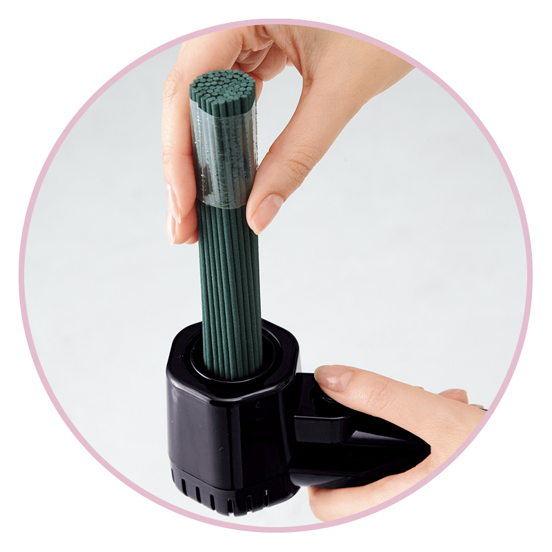 風の強い日も安心。線香に火がつけられます。 風の強い日でも、スイッチを押しながら着火部に線香を当てるだけ。ターボ式線香ライターなら、一束丸ごとを約20秒で着火できます。背面の調整ノブで、弱~強までの火力調整が可能です。 ●サイズ(約):本体=幅6×奥行15.5×高さ7.2cm/着火部=直径2.5cm ●重量(約):240g ●材質:本体・蓋=ポリカーボネート/着火部=ケイ酸アルミニウム ●仕様:ガス注入式、火力調整ノブ ●携帯用巾着袋付 ●中国製 ※着火テスト済のため、着火部に焼き色が付いています。 ※ガスは未注入です。市販のガスライター用ガスボンベをご用意ください。 ※ご使用後の返品・交換はお受けできません。