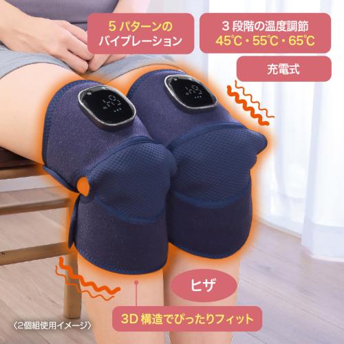 ひざ・腕・肩が温熱と振動でほっとリラックス。 やさしい温かさと5パターンのバイブレーションが気持ちいい~。3D裁断でぴったりフィット。充電式なのでお好きな場所で使えます。仕事や家事のあとのリラックス習慣に。 ●カラー:ネイビー ●サイズ(約):本体=幅50×奥行29×厚さ3.5cm/延長ベルト=60cm ●重量(本体・約):250g ●材質:ポリエステル、ABS樹脂 ●電源:リチウムイオン充電池(3000mAh) ●充電時間(約):2時間 ●定格入力:5V/2A ●定格消費電力:6W ●連続使用時間(約):2時間 ●セット内容:本体×2、延長ベルト×2、USBケーブル(長さ約50cm)×2 ●中国製 ※ACアダプターは付属しません。 ※ご使用後の返品・交換はお受けできません。