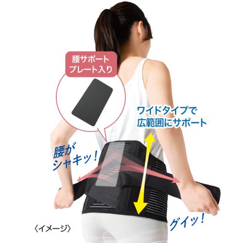 ワイドなダブルベルトで腹圧を高めて腰をシャキッ! 腰から背中までしっかり支える「クロスホールドベルト」と「腰サポートプレート」で安心感UP!骨盤・背筋を正しい位置にリセットします。 ●カラー:ブラック ●サイズ:幅27.5×長さ100cm(M) ●重量(約):300g(M) ●材質:本体=ナイロン、ポリエステル、ポリウレタン、ポリプロピレン樹脂、ポリエチレン樹脂 ●手洗い可 ●中国製 ※ご使用後の返品・交換はお受けできません。