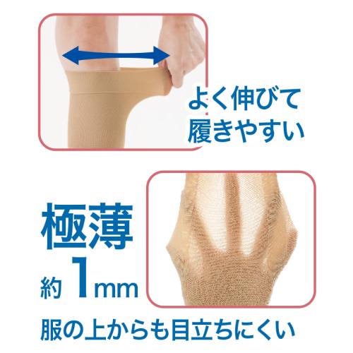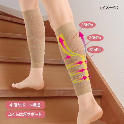 通気性がよい薄型メッシュ。着圧設計でふくらはぎサポート。 4段階サポート構造で程よく圧力を加えて、筋肉のブレを抑え、ふくらはぎを支えることで、長時間の立ち仕事や歩行時の足運びをサポートします。日常生活からスポーツまで対応。 ●カラー:ベージュ ●サイズ(約):適応ふくらはぎ周り=30~45cm ●重量(1枚・約):15g ●材質:ナイロン、ポリウレタン ●洗濯機可(ネット使用) ●中国製 ※ご使用後の返品・交換はお受けできません。
