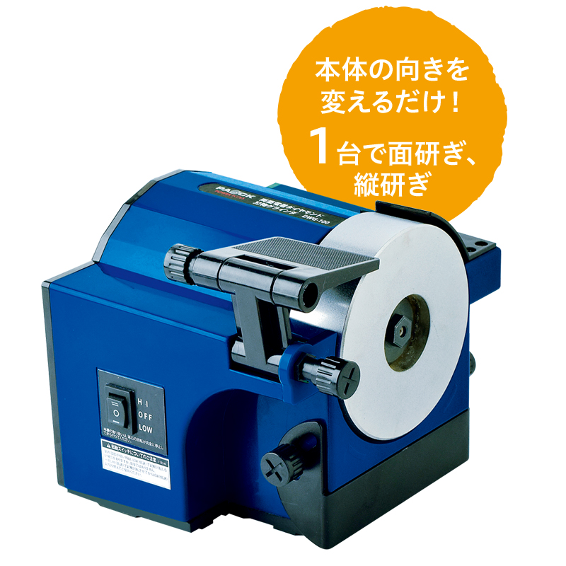 家中の刃物を研いでください。チタン、セラミック包丁も研げます。 砥石はダイヤモンド粒子を電着コーティング。鋼はもちろん、硬いチタンやセラミックの包丁も楽々研げます。刃物角度が調整できる刃物受け台付で刃付けもスムーズ。水のいらない乾式タイプです。 ●サイズ(約):幅17×奥行17.5×高さ14cm/電源コード長さ=2m ●重量(約):2kg ●材質:本体=ABS樹脂/磁石=アルミ合金(ダイヤモンド粒子電着) ●電源:AC100V ●消費電力(50/60Hz):Hi=62/60W/Low=33/30W ●無負荷回転数(分):Hi=2900/3500回転/Low=2300/2800回転 ●連続使用時間(約):10分 ●付属品:インナーフランジ用レンチ、アウターフランジ用レンチ、防塵マスク×5 ●中国製 ※ご使用時は市販の保護メガネ及び手袋をご着用ください。 ※ご使用後の返品・交換はお受けできません。