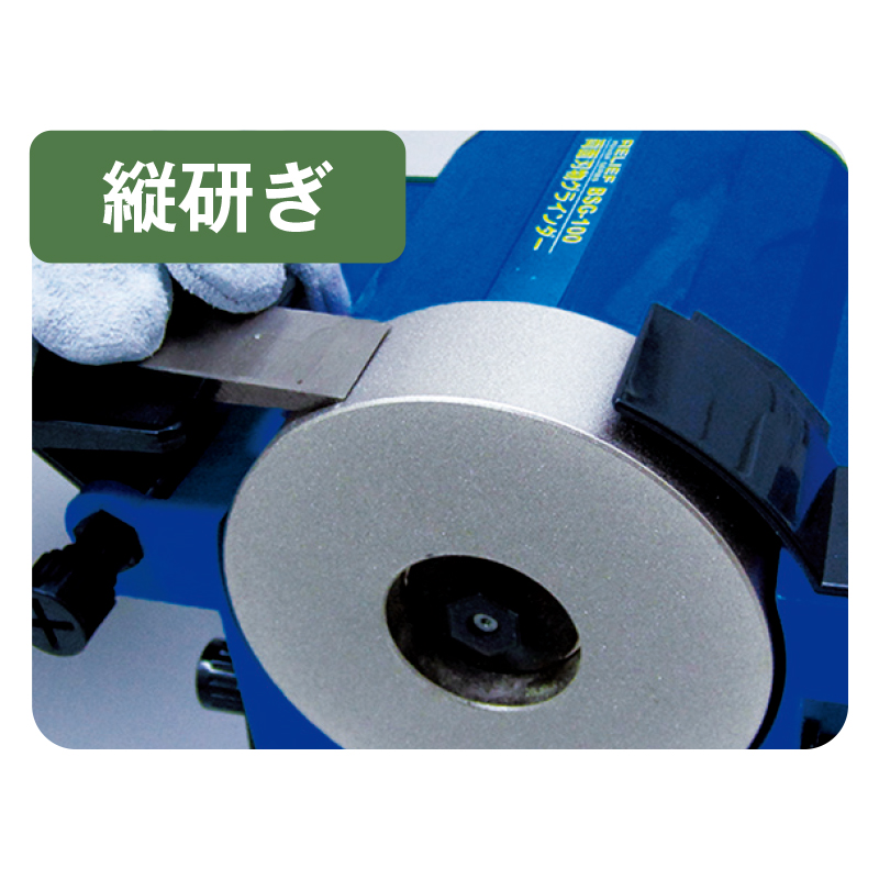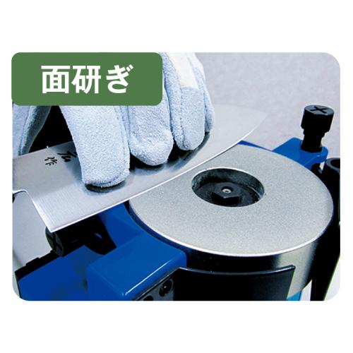 面研ぎは、刃渡りが長い刃物を簡単に刃付け加工ができます。●主に包丁、事務用ハサミなど
