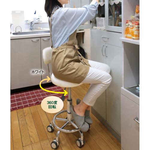 座りながら台所作業。移動もラクラク。 シンクに合わせて高さ調節が自在。360度回転する座面とキャスターで、座ったままの方向転換や移動も簡単。立ちっぱなしの台所仕事がラクになります。 ●サイズ(約):幅41×奥行47×高さ70~84cm/座面高=51~65cm ●重量(約):3.7kg ●耐荷重(約):80kg ●材質:鋼(メッキ)、合成皮革、ウレタン ●組立式(組立参考時間=約15分) ●中国製 ※お届けまで約2週間かかる場合があります。