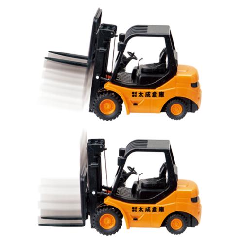 積み荷の移動や上げ下げも楽しめるミニフォークリフト 全長約20cmのミニサイズながら、前輪駆動・後輪操舵の本格ミニフォークリフト。リフト上下もでき、付属のパレット、積み荷、カラーコーンを使ってゲーム感覚で楽しめます。 ●サイズ(本体・約):全長19.7×全幅7.2×全高10.8cm ●重量(本体・約):240g ●材質:ABS樹脂、他 ●電源:本体=単4形アルカリ乾電池×4(別)/送信機=単4形アルカリ乾電池×2(別) ●走行可能時間(目安・約):60分(使用環境・乾電池により異なります) ●仕様:送信機操作による前進後退・右左折・リフト上昇下降、使用周波数2.4GHz(複数台同時走行可能)、操作可能範囲8m ●セット内容:本体、送信機、パレット、積み荷、カラーコーン×4 ●対象年齢:14歳以上 ●中国製 ※ご使用後の返品・交換はお受けできません。