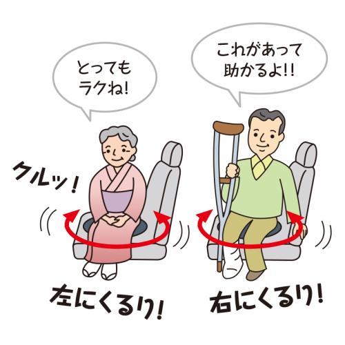 シートが滑らかに回転し乗り降りをサポート! 座って、シートごと回転。身体の向きがラクに変えられます。福祉の国デンマークで20年以上も愛されている商品です。 ●カラー:グレー ●サイズ(約):直径40×厚さ2cm ●重量(約):230g ●材質:表面=ポリエステル(ベロア)/内側=ナイロン、他 ●中国製 ※運転席での運転中のご使用はおやめください。