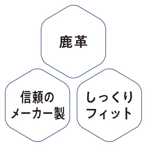 運転をより楽しくする、鹿革ならではのフィット感。 「レザーのカシミヤ」と称され、天然皮革の中でも人間の肌に近いといわれる鹿革製のグローブです。軽く、しなやかな鹿革の繊維はあらゆる方向への伸縮性があるので、複雑な運転操作の際にもしっくりとフィット。吸湿・放出性、耐久性に優れていて、柔らかな質感を保ちます。 ●素材:鹿革、他 ●手洗い可 ●日本製