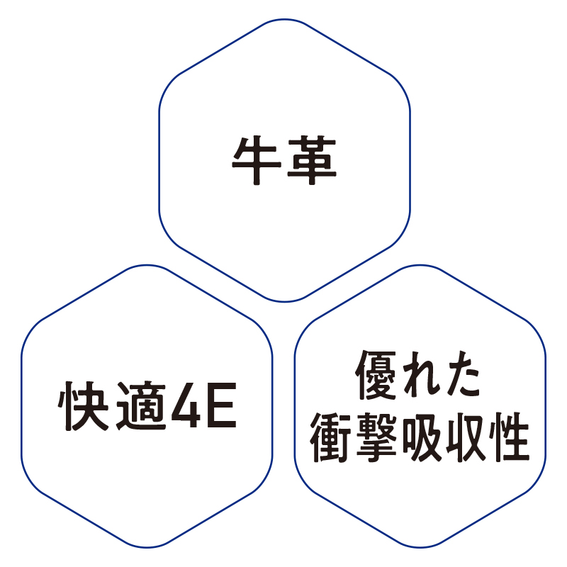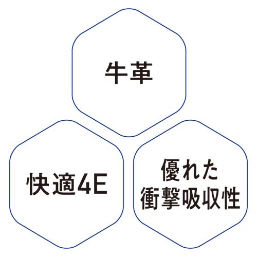 足当たりソフトな国産牛革。快適に長時間歩けます。 窮屈さを感じさせないゆったり4E。衝撃吸収性に優れた中敷が足をやさしく守ります。スーツにも似合うお洒落なデザインです。 ●ワイズ:4E ●重量(約):320g(25.5cm・片足) ●材質:アッパー=牛革/裏材=ポリエステル、合成皮革/ソール=発泡ラバー、ラバー/インソール=EVA、合成皮革 ●日本製